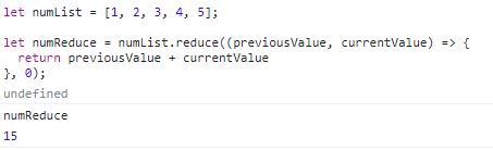 let numReduce = numList.reduce((previousValue, currentValue) => {