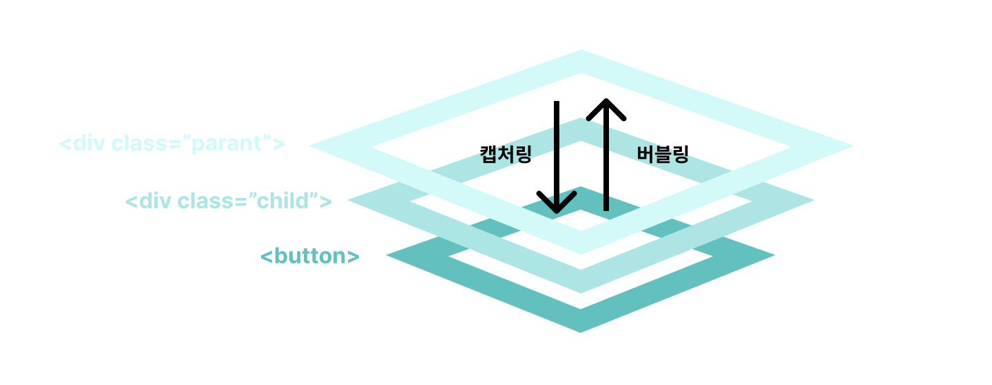 이때 이벤트가 전파되는 순서를 눈여겨 봐야하는데, 자식 요소부터 전파되는 것을 버블링(Bubbling), 부모 요소부터 전파되는 것을 캡처링(Capturing)이라고 한다.