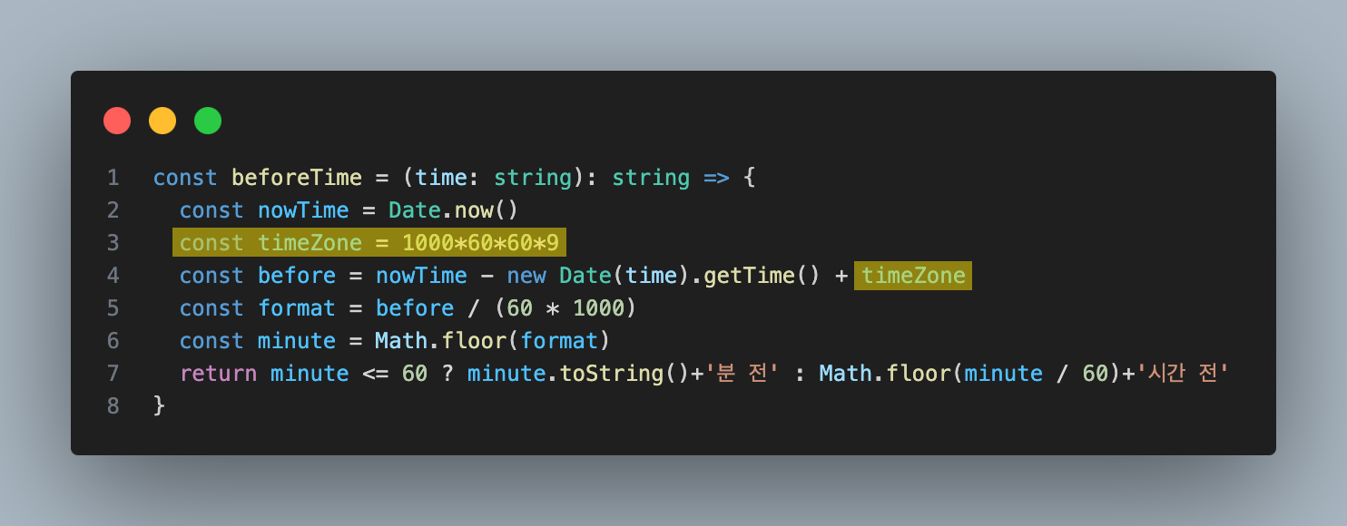 당첨 내역이 한시간 이내면 n분 전, 이상이면 n시간 전으로 나오게끔 해놓았는데 로컬에서는 문제가 없었으나 배포하고나니 -nnnn분 전 이런 시간으로 출력되었다.