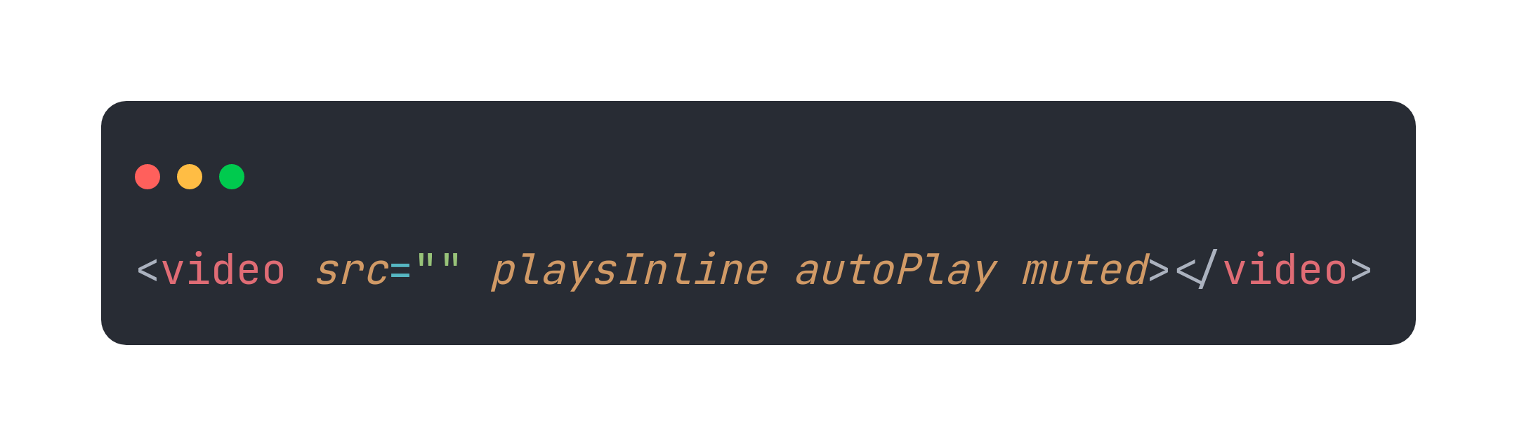 구현 시 동영상으로 모션 효과를 넣었는데, 아이폰에서는 동영상을 클릭 하면 컨트롤바가 나타나는 현상이 있었다. IOS 정책 때문에 전체 화면으로 보인다고 하는것 같은데 PC나 갤럭시에서는 확인해볼 수 없던 문제였어서 당황했다. 그래도 검색해보니 해결법은 단순했다. video 태그에 playsInline 한 줄만 더 넣어주면 끝!